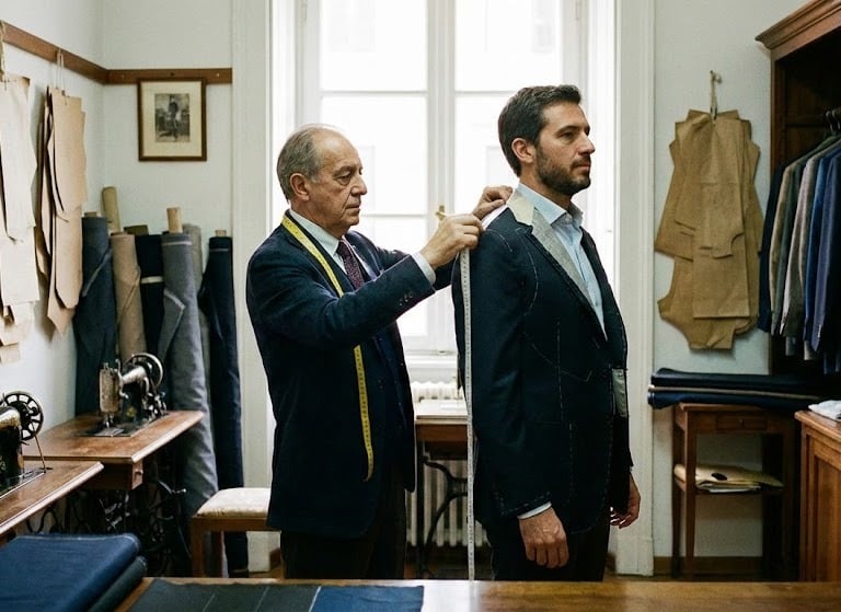 Precision Beyond Standards A suit should not force the body to adapt; it is the garment that must align with the anatomy. Toskana Made to Measure rejects the compromises of standard sizing. We utilize our master patterns not as a final product, but as a calibrated starting point, technically revised to map your specific geometry—from shoulder slope to posture alignment.